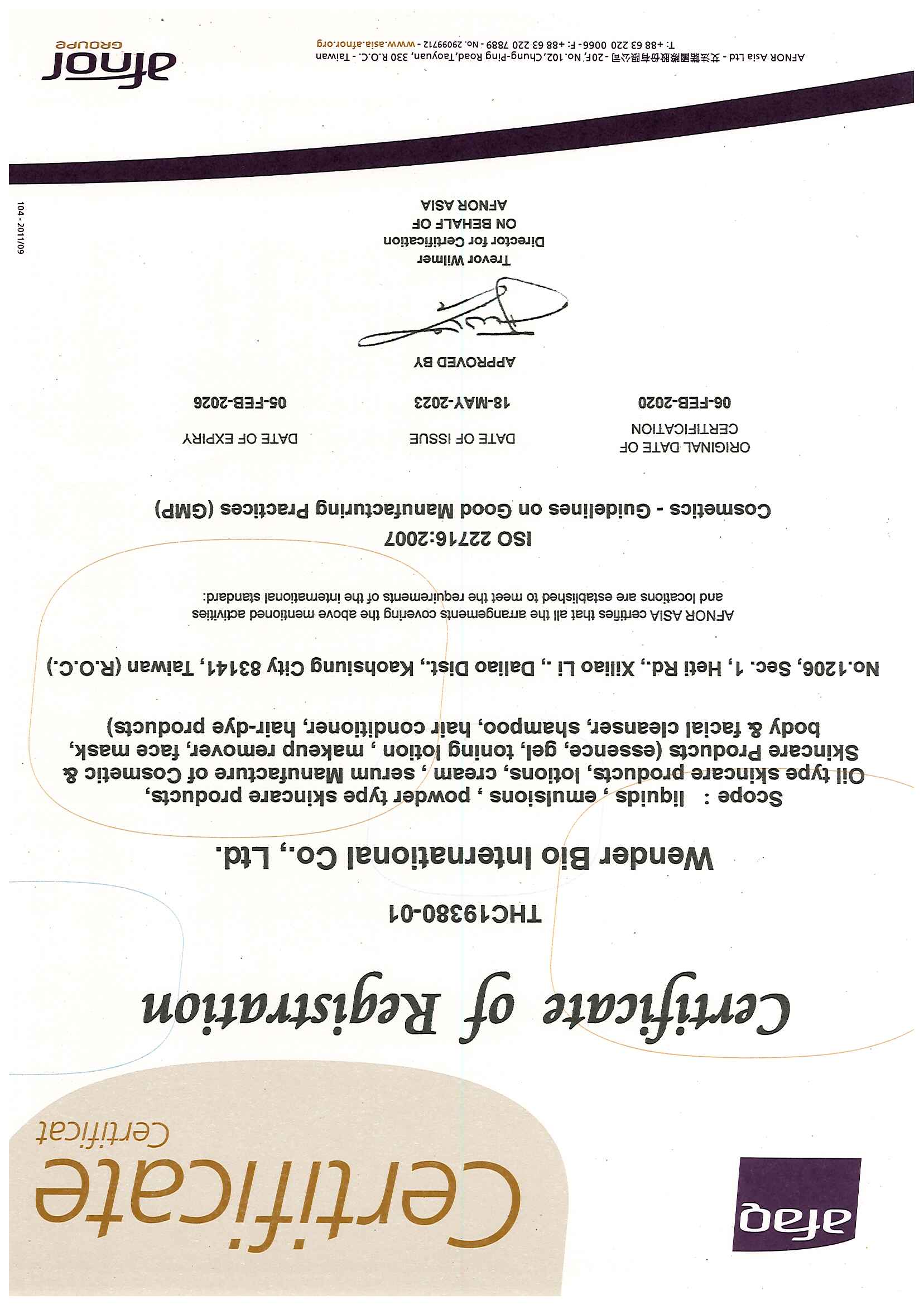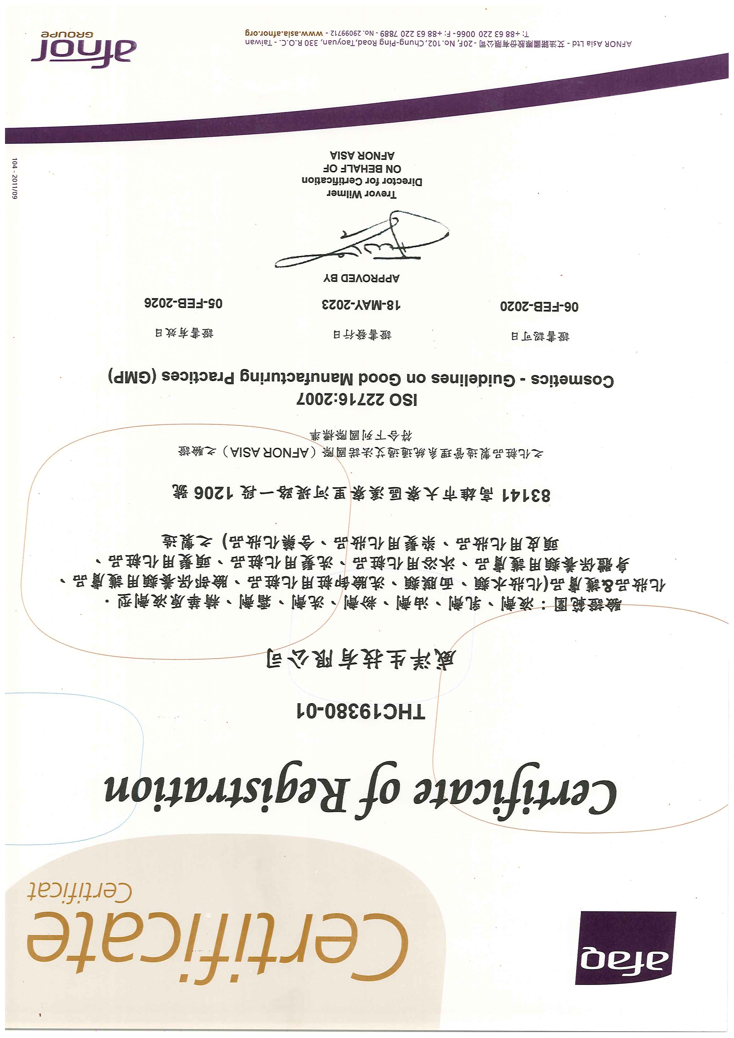 品質管理證書(ISO22716 G M P):